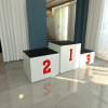 Пьедестал для победителей с металлическим каркасом, разборный, с обшивкой из влагостойкой фанеры толщиной 15 мм.