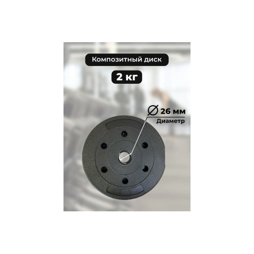 Диск пластиковый/цемент черный (d 26 мм) весом 2 кг идеально подходит для тренировок как в домашних условиях, так и в спортивных залах.